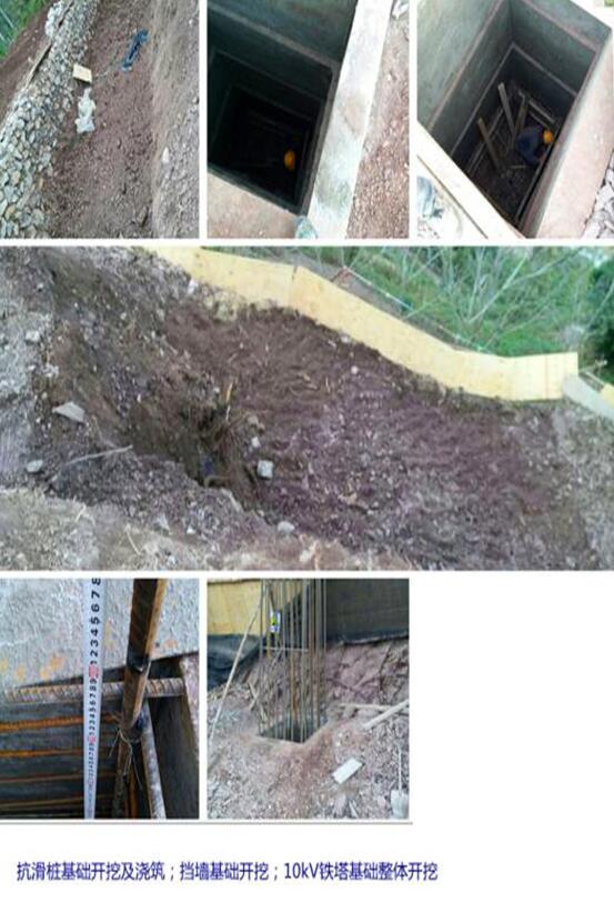 場平土石方開挖、回填、防撞墻定位放線、防撞墻基礎開挖、抗滑樁擋土墻基礎開挖